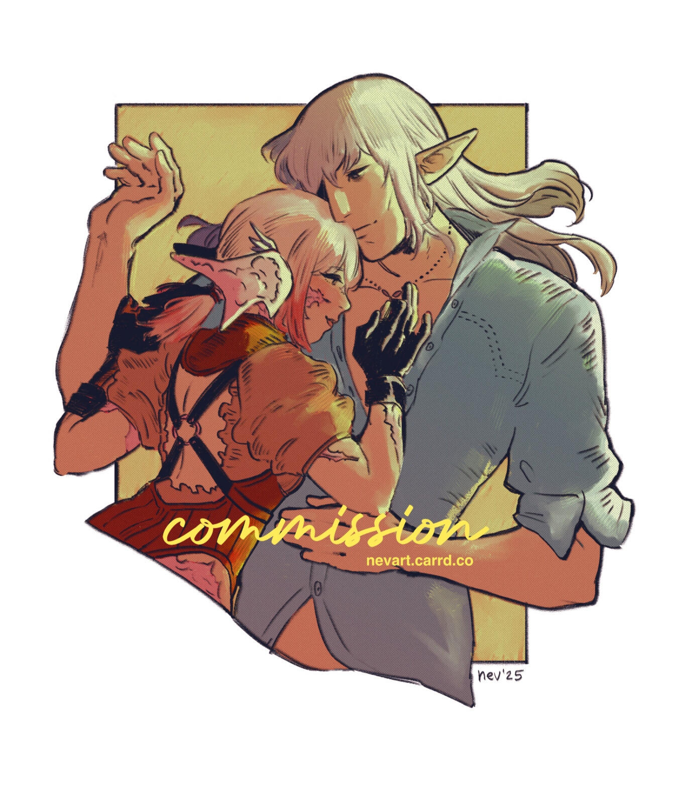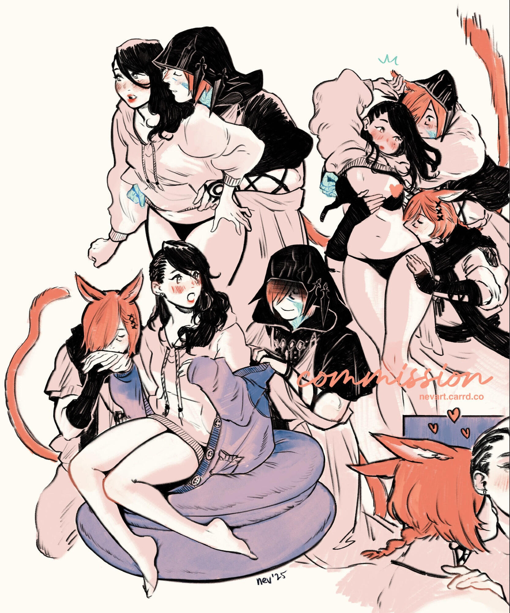 ✦ If you're a first time client, fill out the form on VGEN that suits your needs best.✦ If you're a returning client you can send an email and request your commission that way as long as I have them open.✦ Once I'm ready to take your commission I will send the proposal with the invoice.✦ No revisions, no updates. I just send the drawing when I'm done unless I need to contact you. If I have questions I usually send them with the proposal.✦ With your permission I will share wips on my socials, I won't if you prefer to keep it private or a surprise.✦ This can get you from simple sketches to fully rendered pieces but I will be free to decide everything, from poses to drawing style.✦ Can take from one to two months depending on the type of commission.